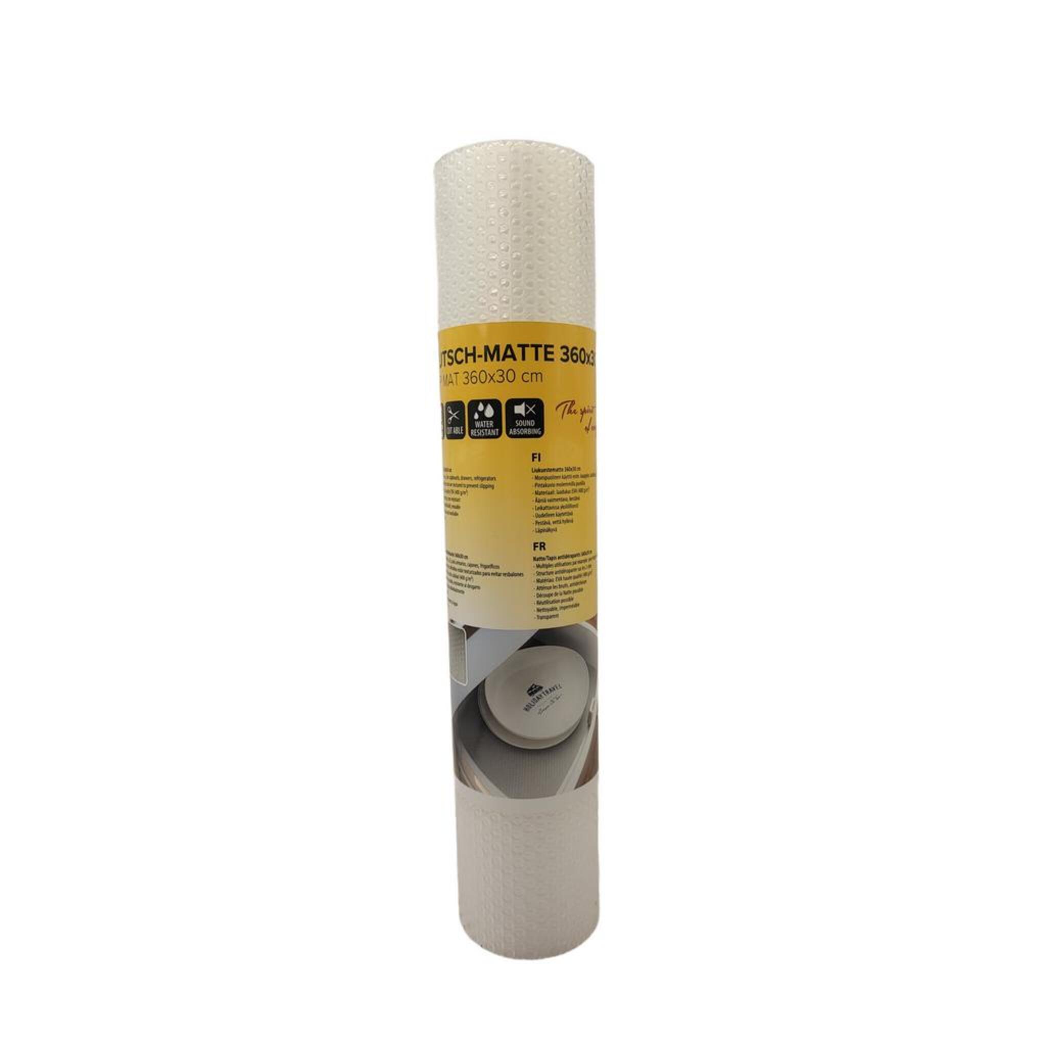 Tauchen Sie ein in die Welt des komfortablen Reisens mit der Camp4 Antirutschfolie, dem idealen Partner für sorglose Ausflüge. Diese Folie wurde speziell entwickelt, um das Verrutschen von Gegenständen während der Fahrt zu verhindern und bietet Ihnen so ein zusätzliches Maß an Sicherheit und Bequemlichkeit. Mit einer großzügigen Abmessung von 360x30 cm ist sie vielseitig einsetzbar, sei es im Wohnmobil, Wohnwagen oder auch in Ihrem Boot. Die Camp4 Antirutschfolie besticht durch ihr robustes und dennoch flexibles Material, das sich mühelos an verschiedene Oberflächen anpasst. Dank ihrer transparenten Optik bleibt die Optik Ihrer Möbel oder der Fahrzeuginneneinrichtung unberührt, während sie gleichzeitig einen effektiven Schutz bietet. Diese Folie kann einfach auf Maß geschnitten werden, sodass sie perfekt in Ihre Schubladen, Regale oder auf andere Ablagen passt. Die Camp4 Antirutschfolie ist wasserdicht und pflegeleicht, sodass sie bei Bedarf einfach gereinigt werden kann.