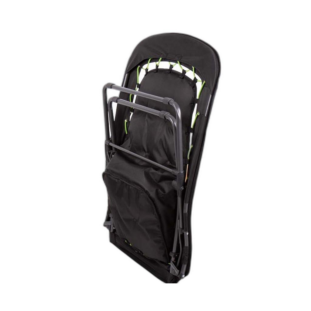 Der Camp4 Klappsessel Bungee bietet Ihnen pure Entspannung. Mit einer hohen Rückenlehne können Sie sich richtig zurücklehnen und relaxen. Der Einrasthebel sorgt für eine einfache Handhabung und das flache Packmaß macht den Transport zum Kinderspiel. Der Klappsessel ist in klassischem Schwarz erhältlich und optional mit einer Gummischnürung in peppigem Lime-Grün oder klassischem Schwarz. Die Schnüre lassen sich leicht austauschen und erlauben eine individuelle Anpassung.