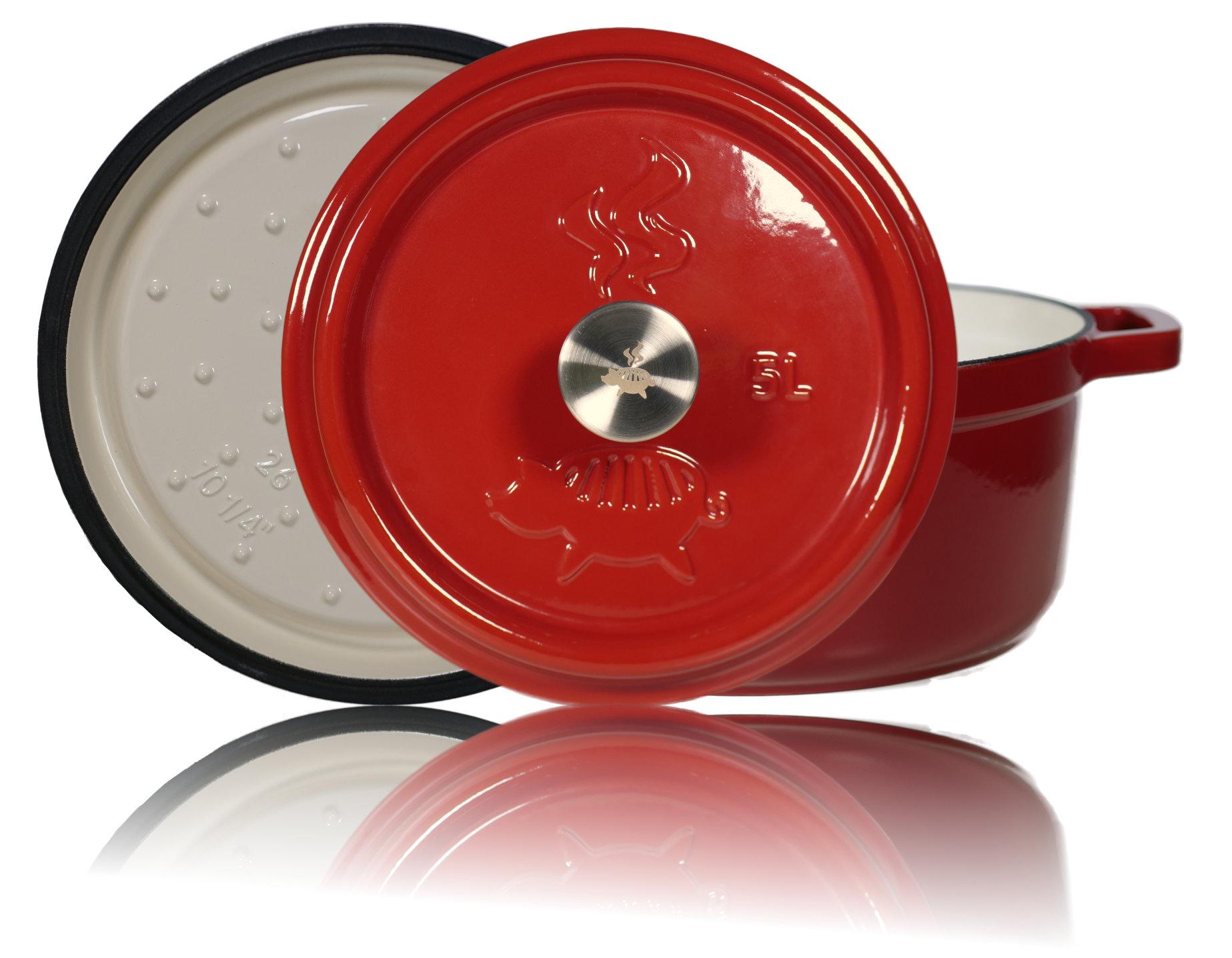 - Gusseisener Topf mit Deckel (Edelstahl Deckelknopf) zum Schmoren, Backen, Braten und Kochen